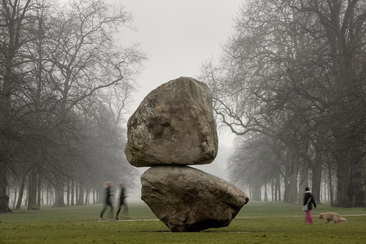 Rock on Top of Another Rock by Peter Fischli & David Weiss comprises two large granite boulders balanced one on top of the other. Standing approximately 5.5 meters high, the deceptively simple work is incongruous and startling, oscillating between stability and instability, construction and destruction. It will be unveiled on 29 October 2025 at a site beside Al Riwaq gallery in MIA Park.