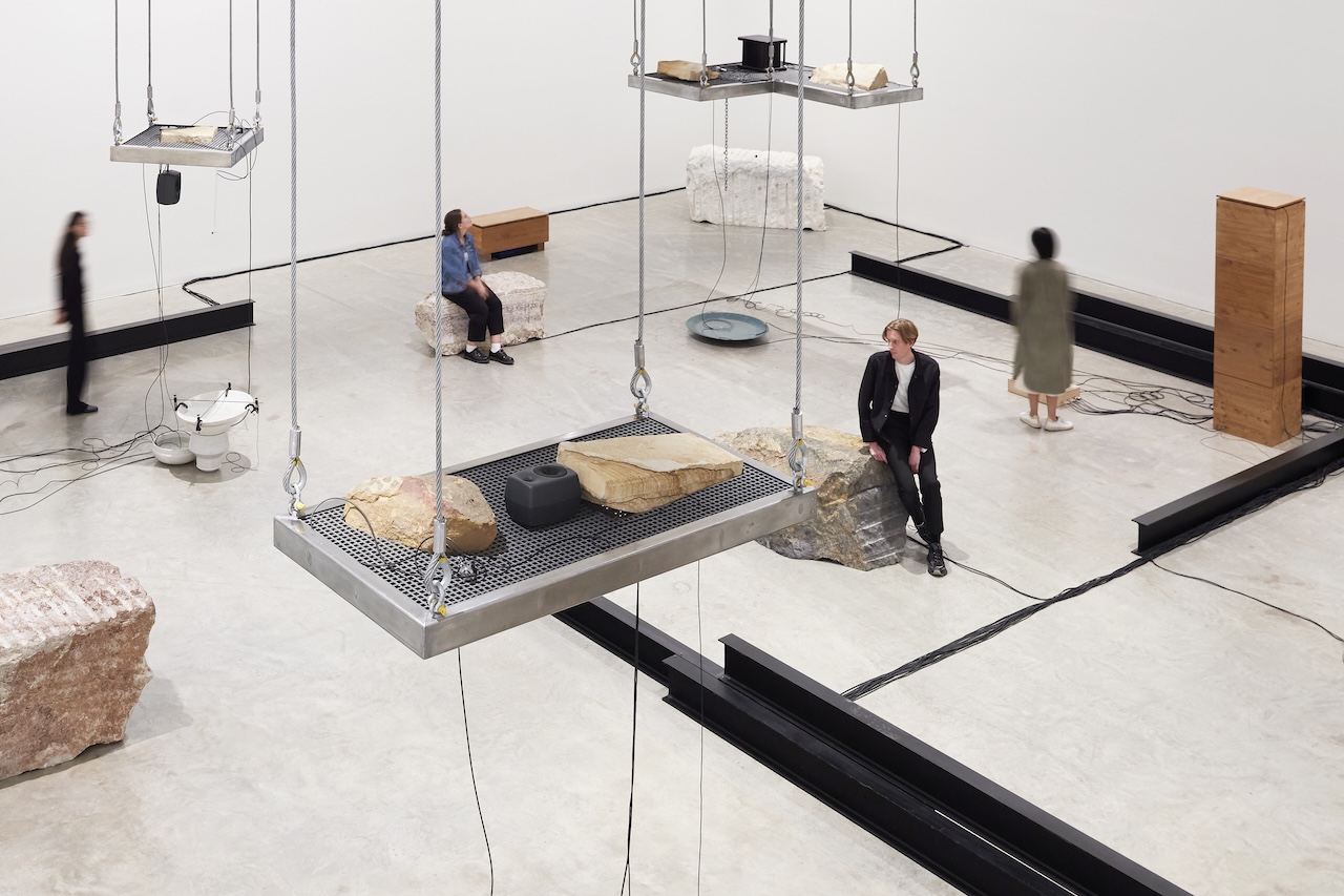 Waters’ Witness is a sound research project focusing on the theme of water by Lebanese artist Tarek Atoui. The installation consists of sculptural and sonic elements, using different materials including marble, metal and ceramics. The work is based on studies and sound recordings carried out by the artist in collaboration with Eric La Casa and Chris Watson. Their aim was to document the human, ecological, historical and industrial contexts of various coastal cities, including Athens, Abu Dhabi, Beirut, Istanbul, Porto, Singapore and Sydney, places where the economic and social life is closely tied to their ports.